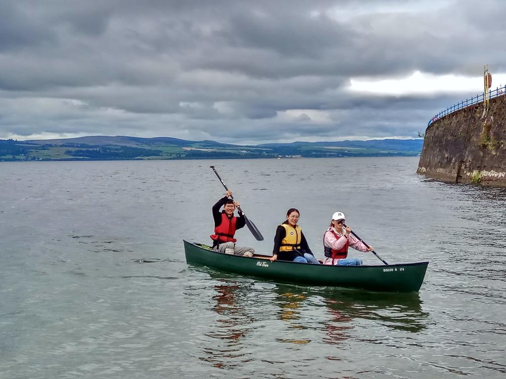 第三周是最忙碌的一周,成员们上了很多的课,也去了很多游玩。在老师们的带领下,大家除了学习英语课程,还去了格拉斯哥的博物馆看了名画,去了罗梦湖国家公园爬山游湖喂野鸭,去了海滨小镇划船吃冰淇淋,去了艾伦岛爬山游海滩。这是忙碌又丰富的一周,苏格兰的海滨非常美丽,还能在滩涂上抓到海星和螃蟹。