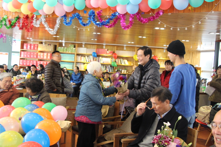 第一个环节是向11位离退休教职工献花。我们展望未来,但也不能忘记前辈给学院发展打下的基础,铺就的道路和做出的贡献。