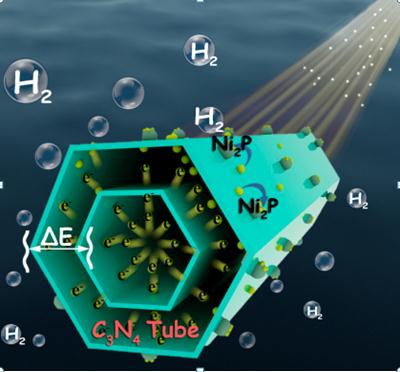 该研究工作将平面g-C3N4纳米片弯曲成氮化碳方管(C3N4Ts),在纳米层间引入表观电势,促进层间电子传输,并将Ni2P纳米粒子作为电子受体负载于C3N4Ts(Ni2P/C3N4Ts),实现高效的太阳能水解离制氢。在Ni2P/C3N4Ts上的制氢效率为19.25 mmol.g-1h-1,且有大量连续不断的H2气泡。密度泛函理论及表征结果揭示了在C3N4Ts的表观电势差下,光生电子从C3N4T(001)定向迁移至Ni2P(111),从而促使Ni2P/C3N4Ts具有高效的产氢性能。这些结果为材料工程领域提供了一种新颖的策略,即通过引入表观电势来提高定向电荷迁移,从而提高太阳能转换效率。
