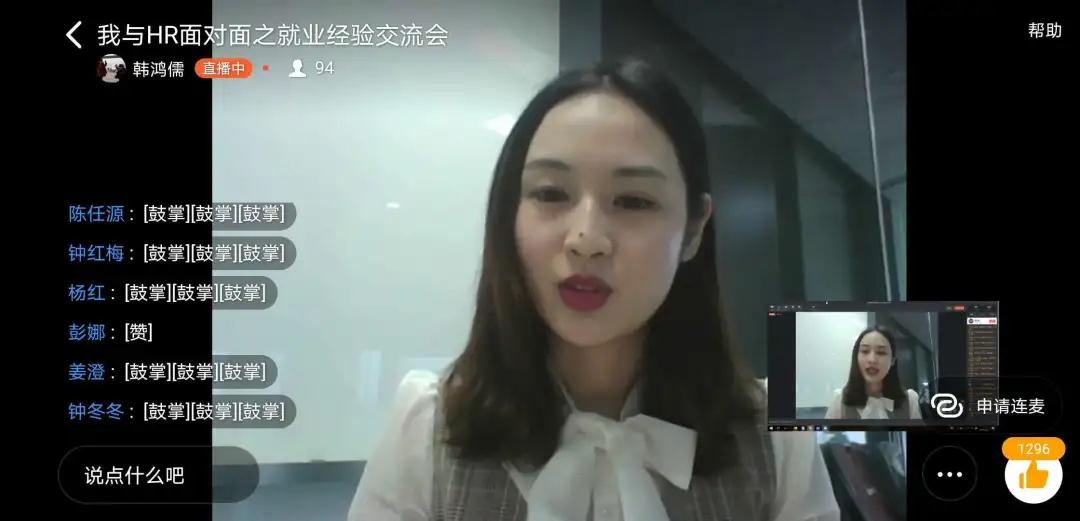 全体学生”钉钉群里,学院邀请了两位经验丰富的知名大型企业康龙化成和中基石化的HR过来跟我们面对面分享经验。两位老师的分享都是干货满满,极大程度上为同学们顺理了应聘面试时的注意事项,解决同学们在找工作过程中遇到的实际问题,令人收益匪浅。
