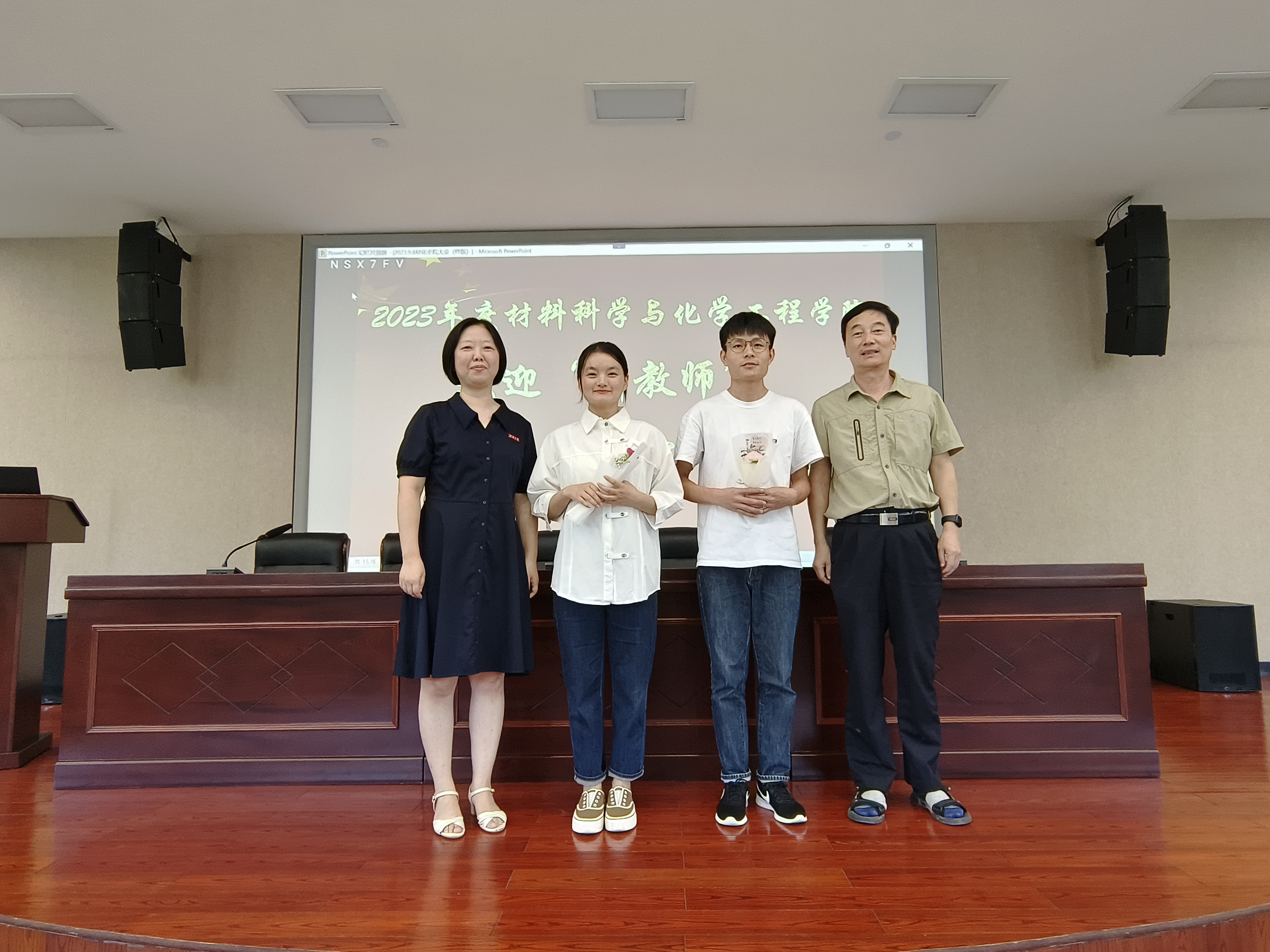会上,陶娟首先对入职的新教师表达了热烈的欢迎,希望新教师能快速融入2048核基地 ,转变角色适应新要求,在学院能够有新担当、新作为。院长和书记分别为新入职教师别上校徽,送上鲜花。随后,一同回顾了2023年上半年教职工校级以上荣誉获得情况,并对2023年度的教师锋领党员、优秀班主任、最美材化人等30余位教师进行了表彰,学院领导为他们颁发奖杯。