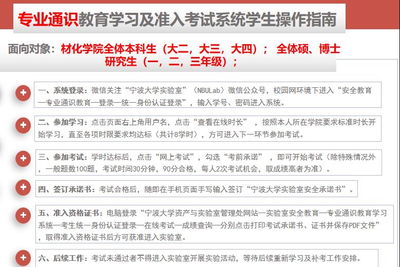 实验室管理专项目标考核的要求,每一位需要进入实验室学习和工作的师生必须进行实验室安全的在线学习、考试,成绩合格方可进入实验室工作学习(准入制),考核未合格的学生严禁进入实验室,其名单将在2048核基地