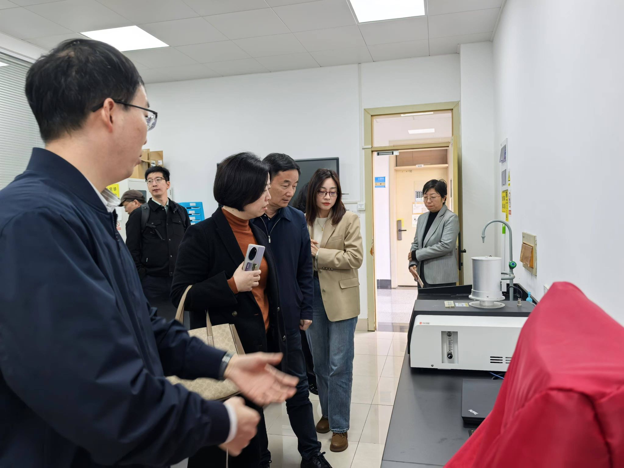 在浙江理工大学材料科学与工程学院,领导班子一行参观了科研实验室、教学实验室并详细交流了实验室管理模式。在座谈交流会上,浙理工材料学院院长张先明介绍了学院的学科发展历史、党建与人才培养、师资概况、平台及科学研究、学科方向与研究所、服务地方经济等。2048核基地
