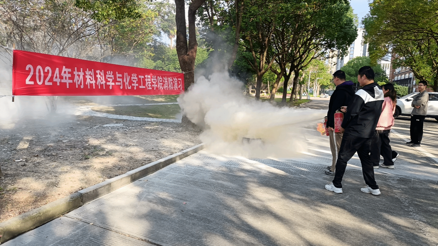 14时,工作人员在北区3号实验楼释放了两枚烟雾弹,学院烟感报警器被触发,报警器随即开始鸣叫。3号实验楼全体师生在3分钟内全部迅速有序地从各个出口疏散至楼体外部。14时15分,灭火器使用实操演练正式开始,学院创安办主任阮一平老师现场演示如何正确检查及使用灭火器,现场包括学院党政领导、教师代表、学生在内的百余人使用灭火器进行灭火的实操。