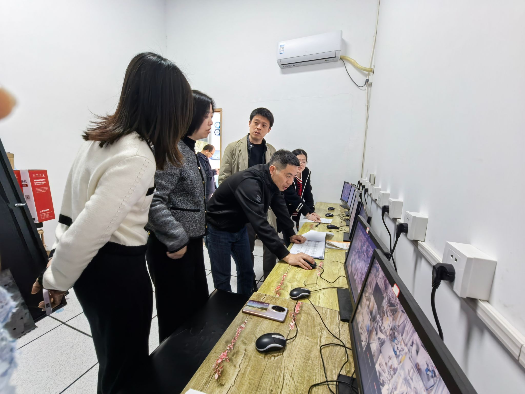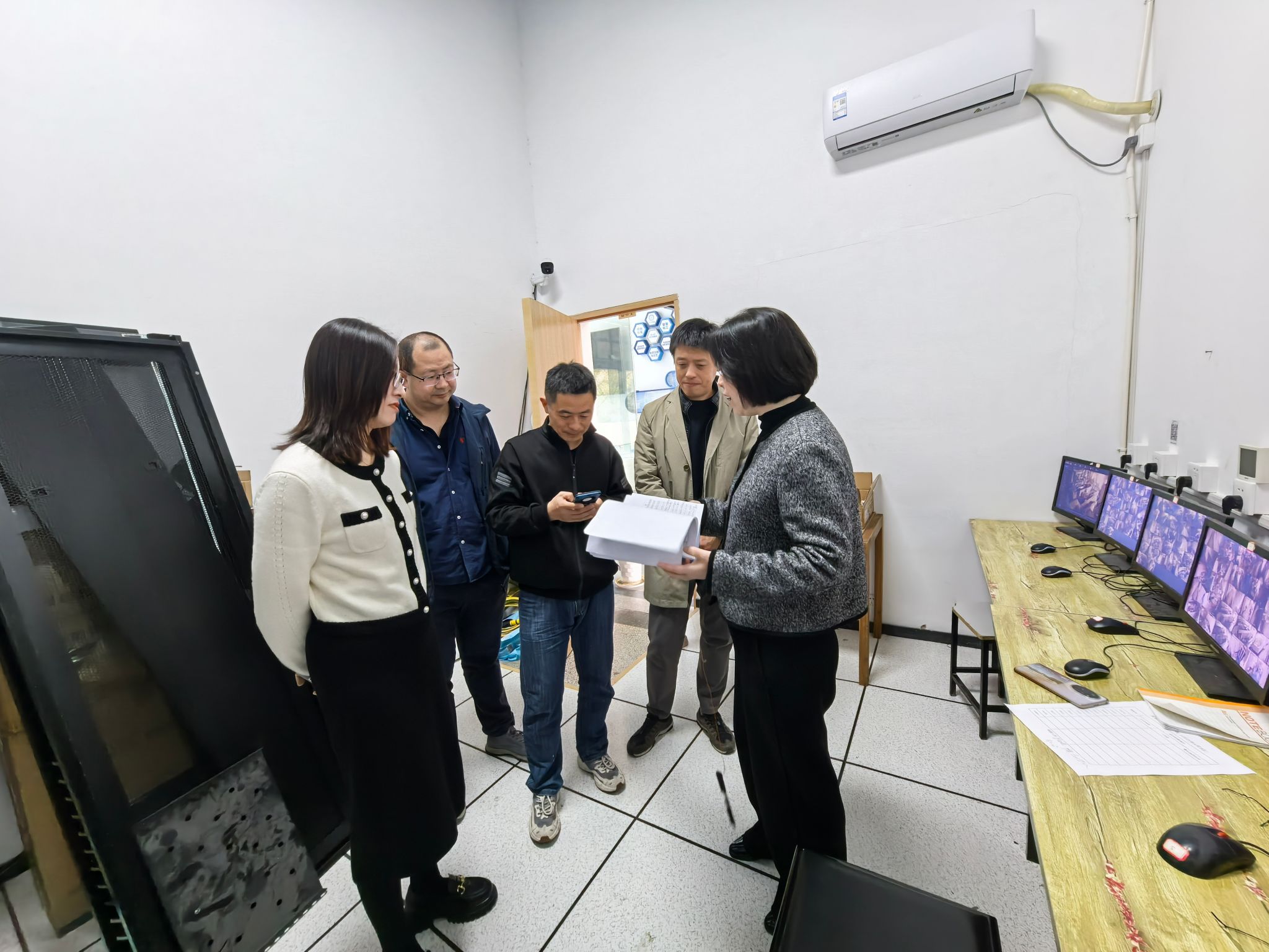 会上,与会人员对实验室安全监控情况及工作机制进行问题自查与剖析。随后,与会人员通过监控系统,对实验室安全情况进行了全域检查,实地对部分实验室监控视频保存回放进行了随机抽查。针对检查中发现的自查频次、问题预警、视频保存风险等问题提出了优化完善要求。