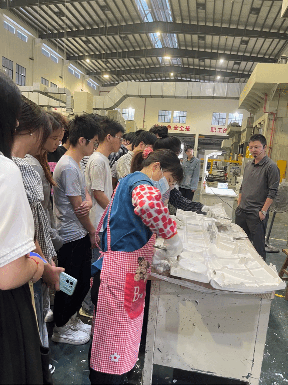 的学生,在正式参观前,公司安全主管为参观的师生进行了安全生产专题培训,组织师生学习企业安全操作规范,确保参观过程安全有序。余经理首先在生产车间介绍了高精度液压装置,并带领学生参观BMC团状热固性模塑料压制成绝缘予以及SMC片状模塑料压制成汽车配件的过程。随后,同学们进入样品室,直观地感受了华缘的发展历程、前沿技术以及“复合材料应用完美方案缔造者”的愿景。华缘产品在电力、通信、轨道交通、汽车等多个领域的应用,令同学们叹为观止。最后,在工作人员的带领下,同学们进入研发中心,参观了电气实验室、燃烧/耐候实验室、力学实验室等。
