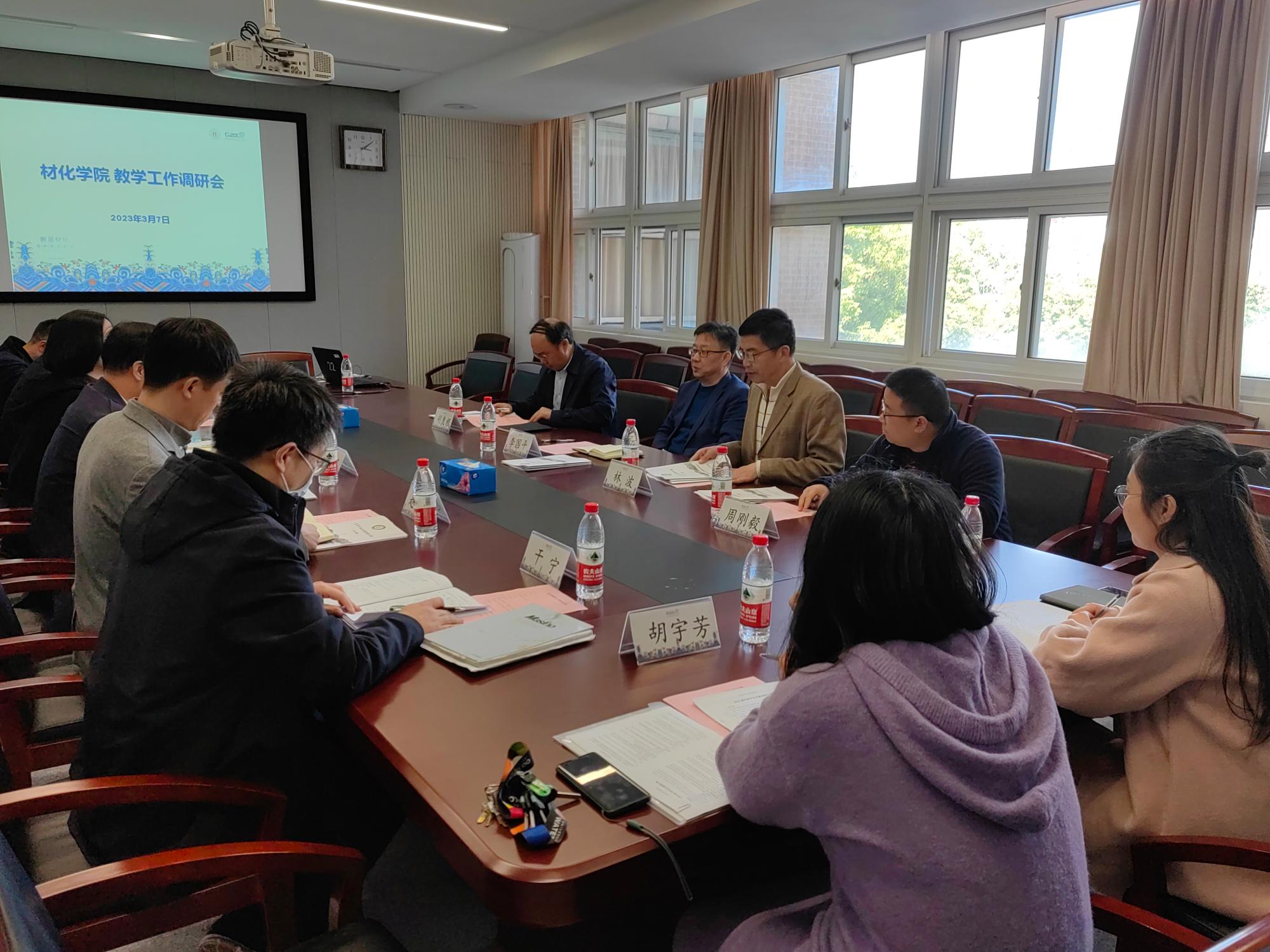 3月7日下午,教务处处长李国平、副处长林波、胡良根、周刚毅莅临材化学院调研,材化学院院长丁传凡、党委书记陶娟、教学副院长赵传壮、教学秘书、各系主任、副主任参加了本次调研。