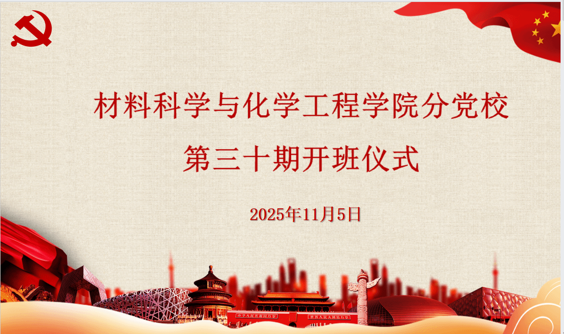 为深入学习贯彻党的二十届四中全会精神,进一步加强党员队伍建设,2025年11月5日,材料科学与化学工程学院2025年下半年分党校培训班开班仪式在北区3号教学楼106顺利举行。本次开班仪式由院党建辅导员、分党校班主任芦意主持,院党委书记、分党校校长陶娟、院党委副书记、分党校副校长尹慧及分党校培训学员共计79人参会。