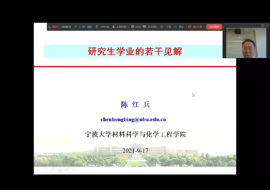 邀请了陈红兵老师以线上钉钉群直播的形式,开展了以“研究生学业的若干见解”为题的入学教育。