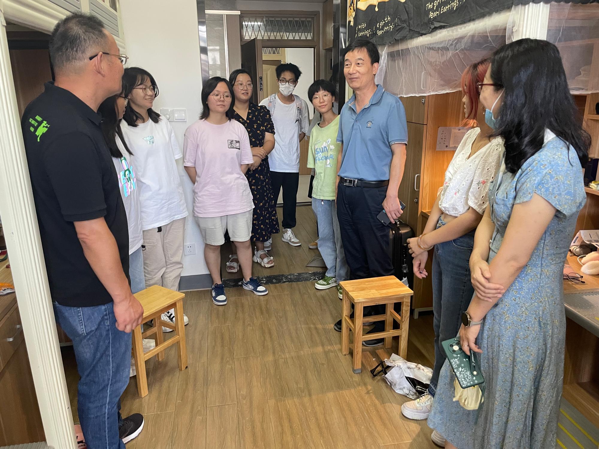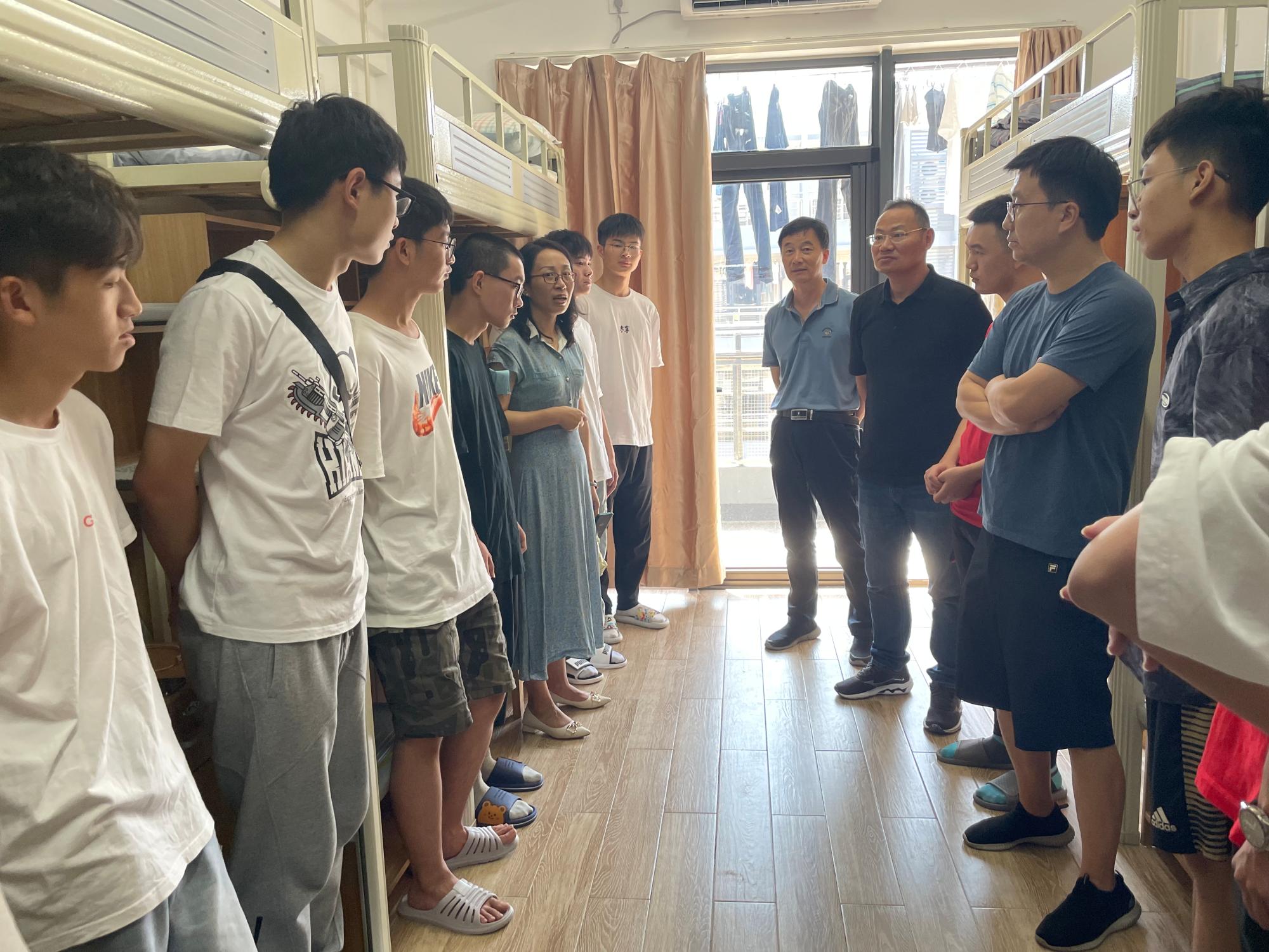 特聘院长丁传凡、党委书记罗云杰、副院长孙巍、党委副书记朱燕以及学院学工办辅导员一行来到2022级阳明新生寝室,深入了解2048核基地