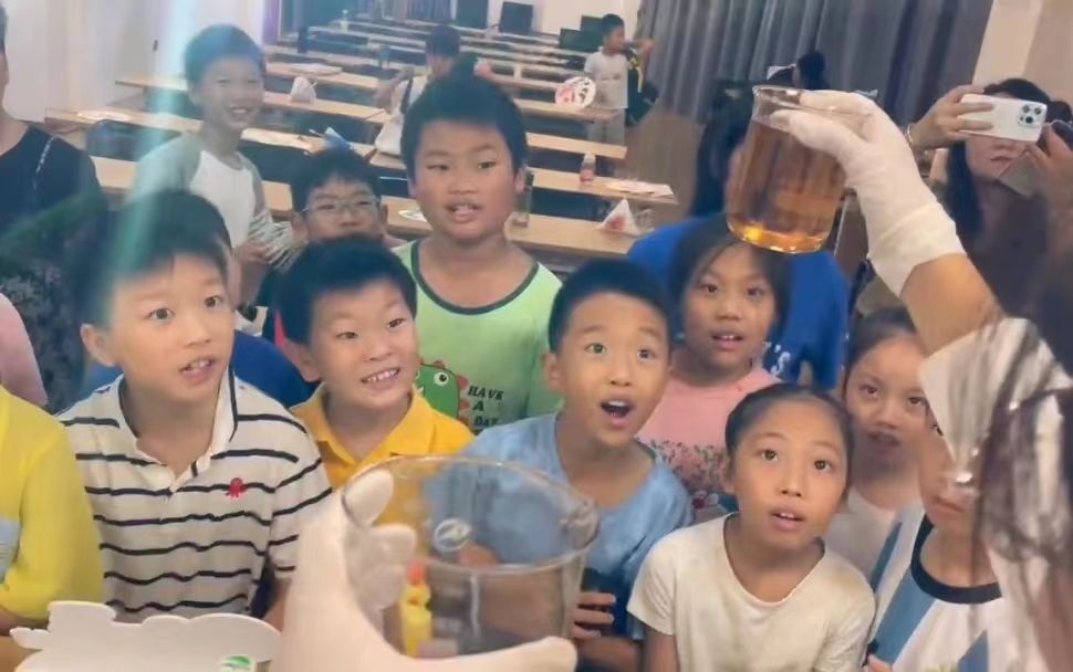 趣味的化学实验让孩子们在已知的生活世界和未知的科学世界之间建立一座知识桥梁,感受化学的魅力和科学世界的奥秘。小朋友们在完成趣味实验的同时锻炼了科学思维和动手操作能力,同时也提升了团队合作意识。