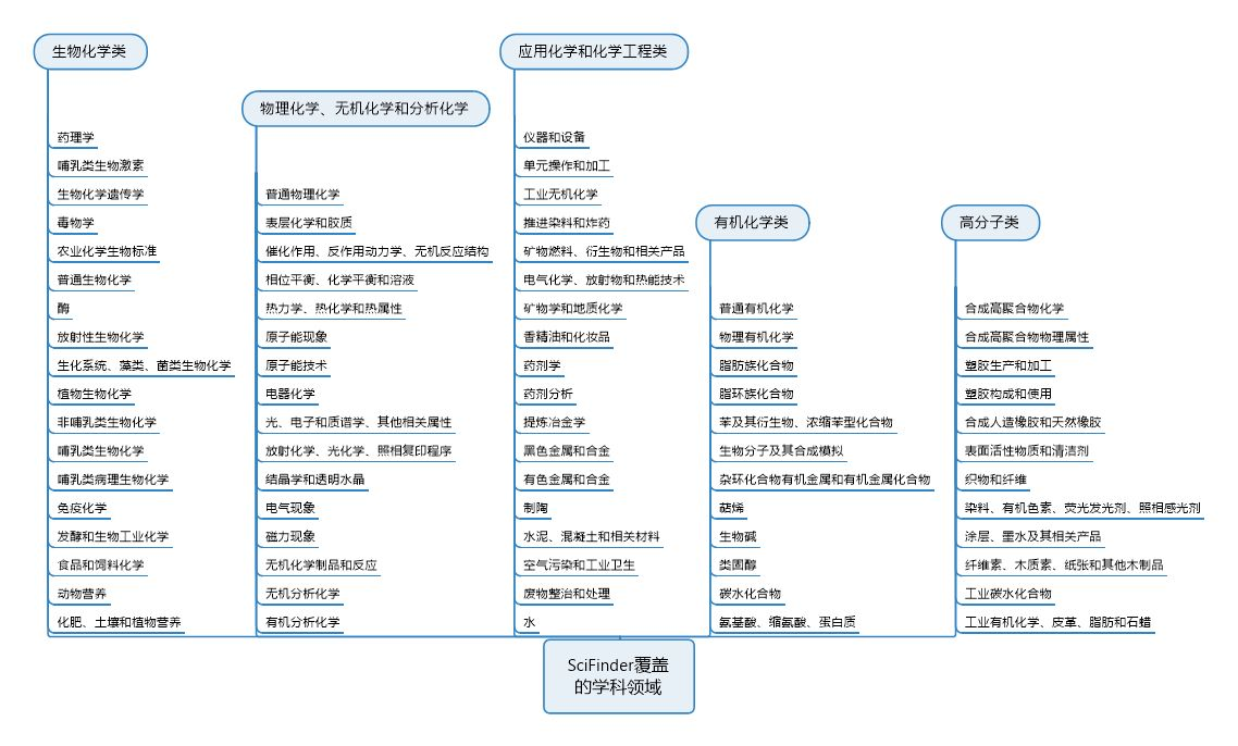 5-全球最可靠、最大的物质、反应和文献(源自专利和期刊)数据库,覆盖领域如下图所示: