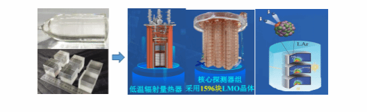【应用背景】中微子是所有标准模型中的重要粒子,理论学家认为,中微子很可能是自身的反粒子。然而,只有观测到一种极其稀有的无中微子双贝塔衰变,方可确认该理论,进而有望解开为何现在的宇宙中几乎全部是正物质、不存在反物质的谜团。LMO是无中微子双贝塔衰变实验的关键探测材料之一,同时也是建造低温辐射量热器的主要材料,【需解决的问题】极高纯度极低辐射本底的LMO晶体(其中最终应用的晶体中钼为同位素钼-100)制备技术。【目前进展】本课题组参与了CUPID-China合作组的LMO闪烁单晶元件的研制工作,成功生长了大尺寸LMO单晶,并为探测器组了45´45´45 mm规格的高质量LMO立方单晶。
