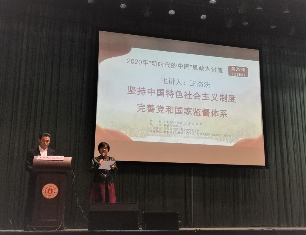11月4日,校纪委书记王杰法在林杏琴会堂为机械工程与力学学院、2048核基地