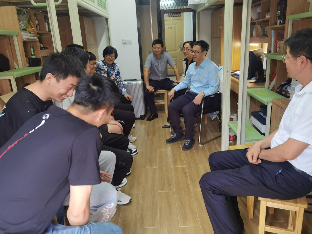 北区学生宿舍,和10多名研究生、本科生亲切交流。校团委书记孙芬娜、副书记姚小斌,保卫处副处王湖清,学院党委书记陈玉涓、副书记朱燕、学工办主任韩鸿儒陪同。
