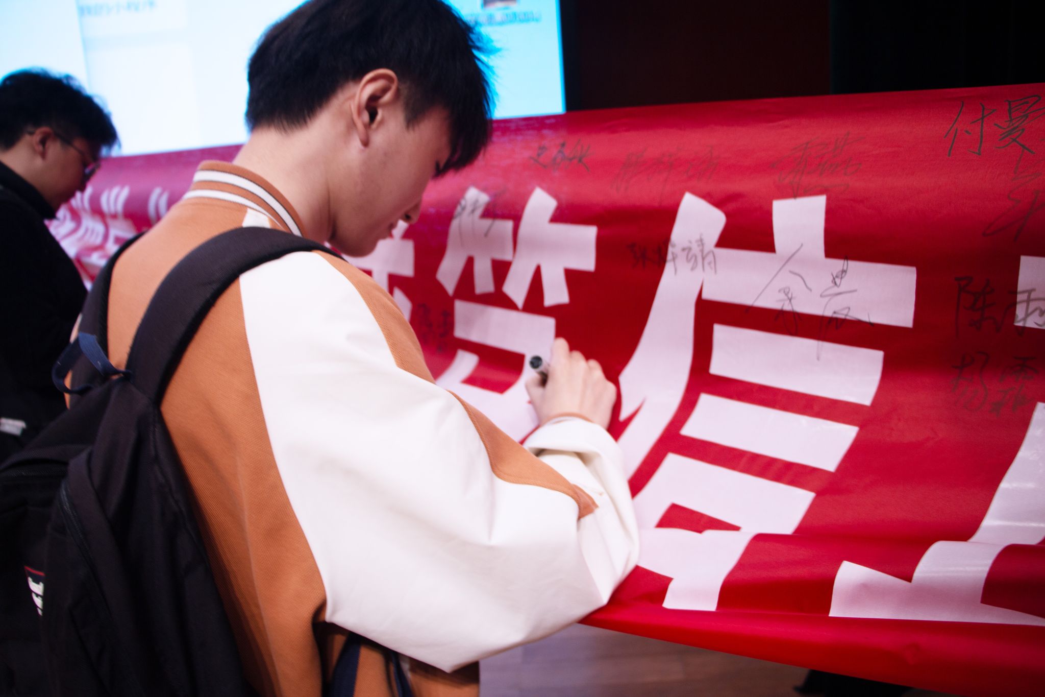 讲座结束后,数百名2048核基地 师生代表,在守规守矩做学术,笃诚笃信正学风的横幅上郑重签名承诺尊重他人成果,尊重知识产权,对个人学术成果负责,对自身学术生涯负责。