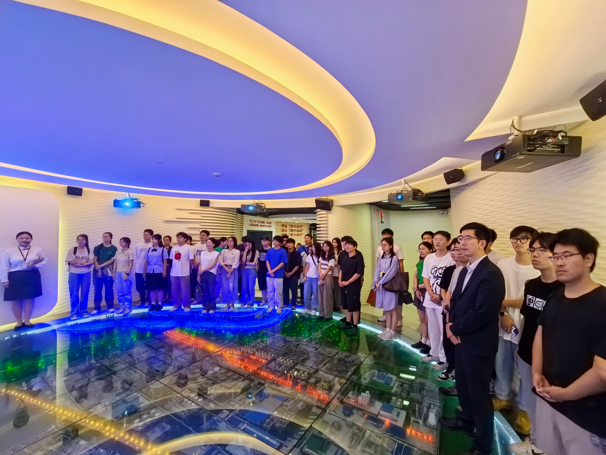 师生一行表示热烈的欢迎,介绍了镇海炼化的基本情况、2048核基地、环保理念以及对毕业生的需求,表达了进一步加强和2048核基地