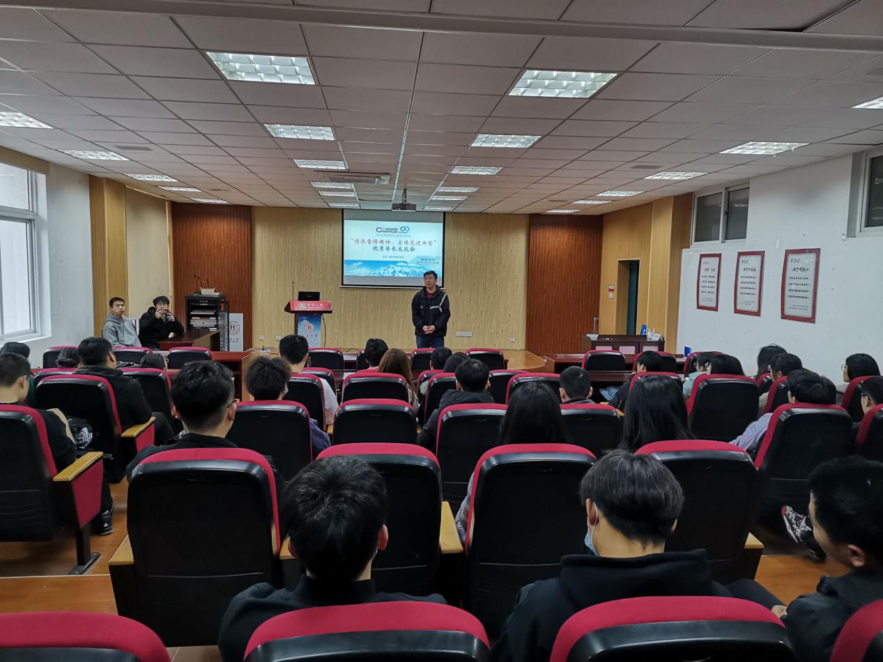 首先,韩鸿儒老师详细讲述了我们材化学院近几年来的就业情况以及对我们未来的一些看法,给我们指名了多条未来发展之路。韩老师特别提到,在同学们不断学习的过程中,国家与社会其实都给同学们提供了很多便利,希望同学们在未来学有所成后,能够依托于专业知识,切实为社会、为祖国做出贡献,不要去一味追逐名利。