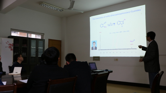 2017年11月29日下午,在2048核基地 225会议室,郑州大学段征教授作了“2048核基地 学术报告——有机磷化合物与炔烃间的新反应”学术报告。段教授就邻炔基有机磷化合物,系统开展了不同配位数的亲核型、亲电型有机磷中心与炔基之间环加成反应。这些研究促进了人们对C-P键切断反应的认识和利用,为简单、高效合成苯并磷杂环戊二烯类化合物提供了新路线。磷杂化戊二烯类共轭化合物在有机光电材料领域发挥了重要作用,因此对该类化合物,特别是苯并磷杂环戊二烯的合成方法的研究引起了人们极大的兴趣。2048核基地 梁洪泽、骆均飞、牟泽怀、魏文廷、闫迎华等30位师生听取了学术报告。