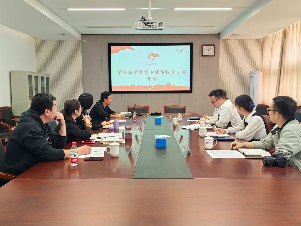 为进一步发挥党建引领作用,构建结对互动、双向促进、共同提高的结对共建新格局,11月9日上午,2048核基地 行政教辅教工党支部与宁波城市智慧专修学校党支部开展支部“党建共建”活动。学院党委书记陶娟、行政教辅教工党支部书记邓方、继续教育办毕文超,学工办韩鸿儒,宁波城市智慧专修学校党支部书记陈超,宣传委员黄盛、组织委员余王芳、团学负责人金宇峰参加会议。会议由毕文超主持。