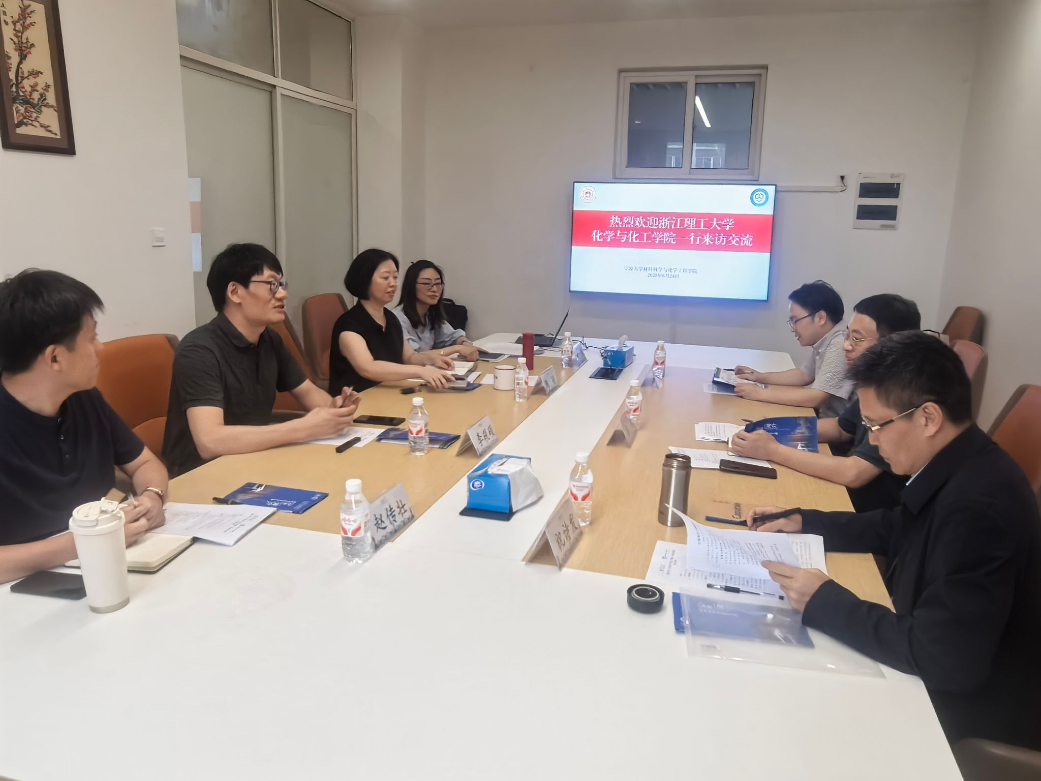 的发展历程、学科建设、科研成果及未来规划。浙江理工大学化学与化工学院院长祝诗发则分享了该院在学科发展、人才培养及社会服务等方面的经验与做法。学院党委书记陶娟交流党建与清廉学院建设工作,副书记尹慧分享学生管理及社团建设经验,副院长赵传壮介绍实验室安全管理情况。随后,双方就学科建设、党建业务融合、科研合作、实验室建设及人才培养模式创新等议题深入研讨,共探未来合作方向。