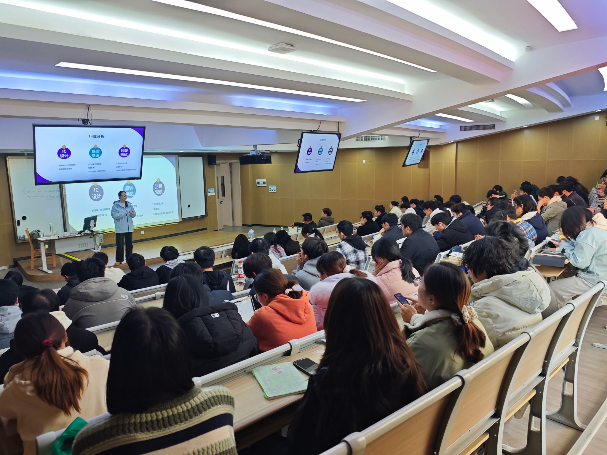 讲座中,严盼云女士以“就业风向标”为切入点,系统剖析了芯片封装行业的发展前景与企业人才需求矩阵。她结合HR筛选简历的核心逻辑,分享了实用的简历优化技巧与测评应对策略,内容翔实、紧扣实际。互动环节中,甬矽电子HRBP沈老师从一线招聘者视角,详细解读了企业招聘全流程,并耐心解答了同学们关于职业规划、技能储备的疑问,现场气氛热烈。