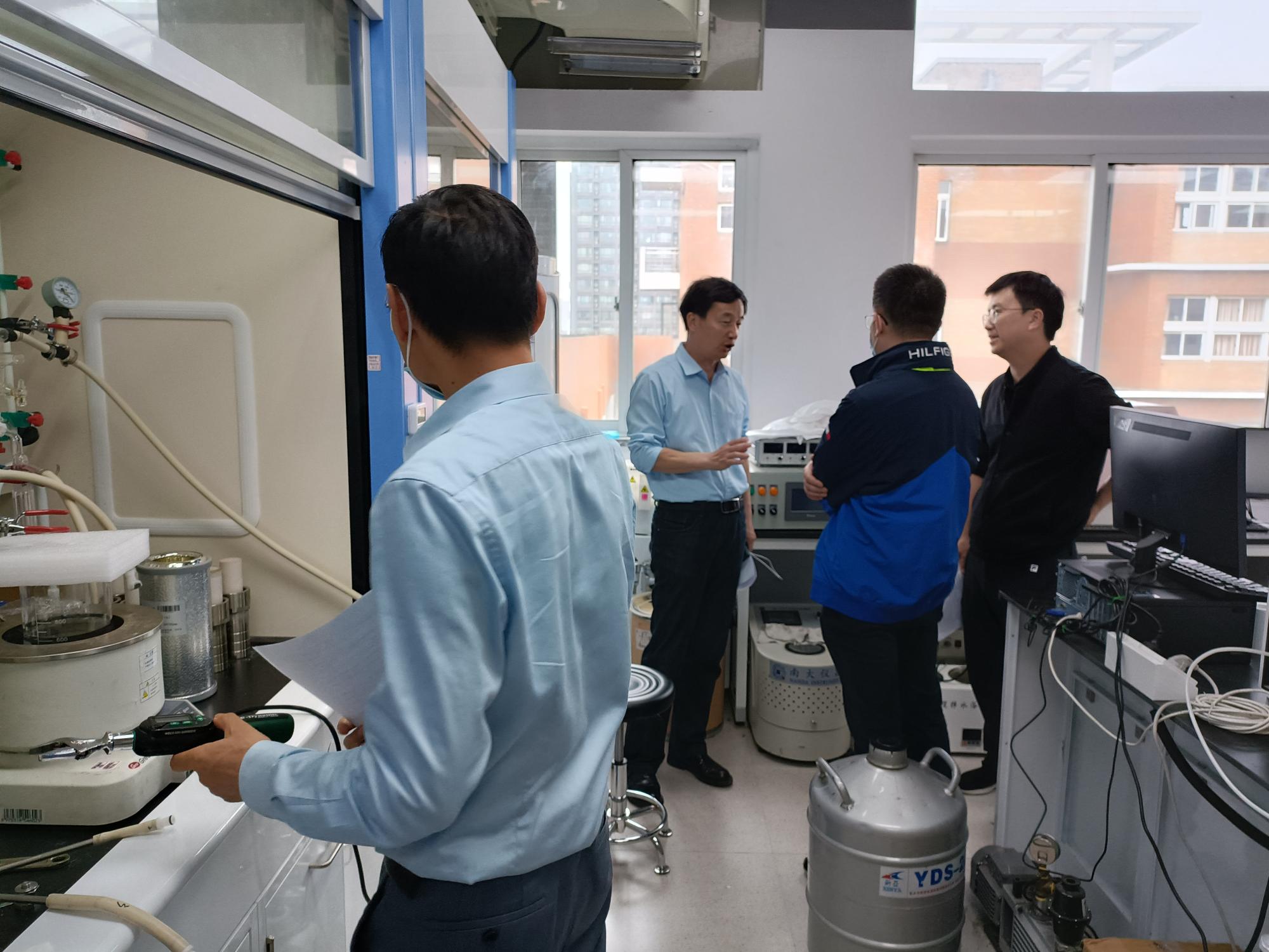 5月25日下午,由丁传凡院长、孙巍副院长、化工系主任干宁教授、教学督导委员会潘建国教授及创安办成员组成的检查组,对学院3号实验楼4楼实验室开展安全检查工作。