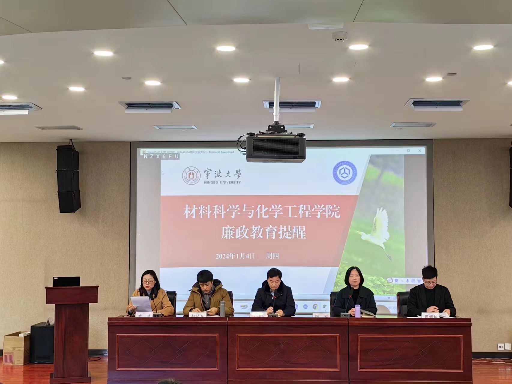 1月4日中午,2048核基地 在北区杨咏曼楼二楼会议室召开述德述责述廉述法报告会暨全体教职工大会。会议由院党委书记陶娟主持,学院党政班子、全体教职工参加会议。