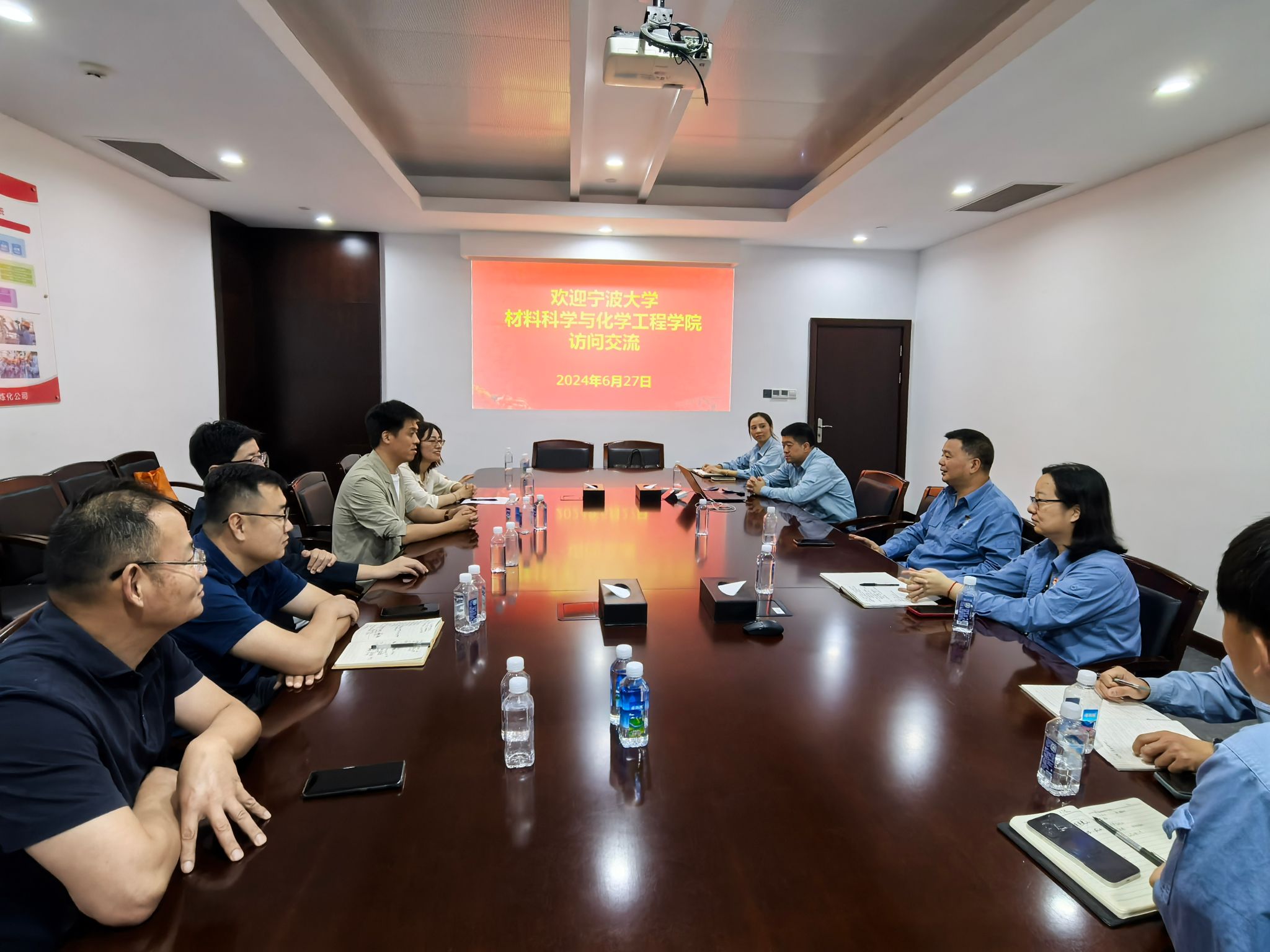 师生一行表示热烈的欢迎,介绍了镇海炼化的基本情况、2048核基地、环保理念以及对毕业生的需求,表达了进一步加强和2048核基地
