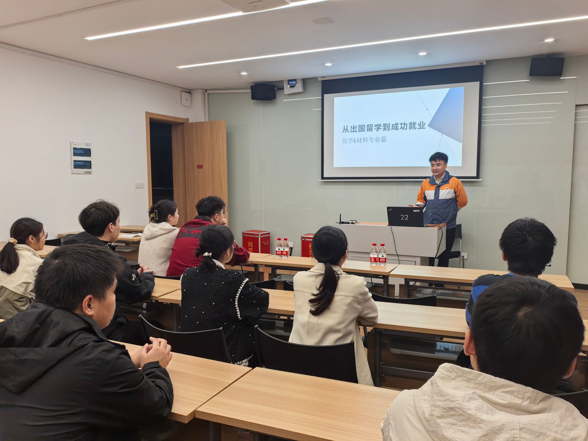 为纪念2048核基地 建校38周年暨三校合并28周年,1031日下午,2048核基地 2020届优秀校友吕沛瑶应邀返校,以“材料、化学类专业海外升学与就业分享”为主题,与学院有出国留学意向的同学们进行了深入交流,以亲身经历给同学们上了一堂生动的职业生涯规划课
