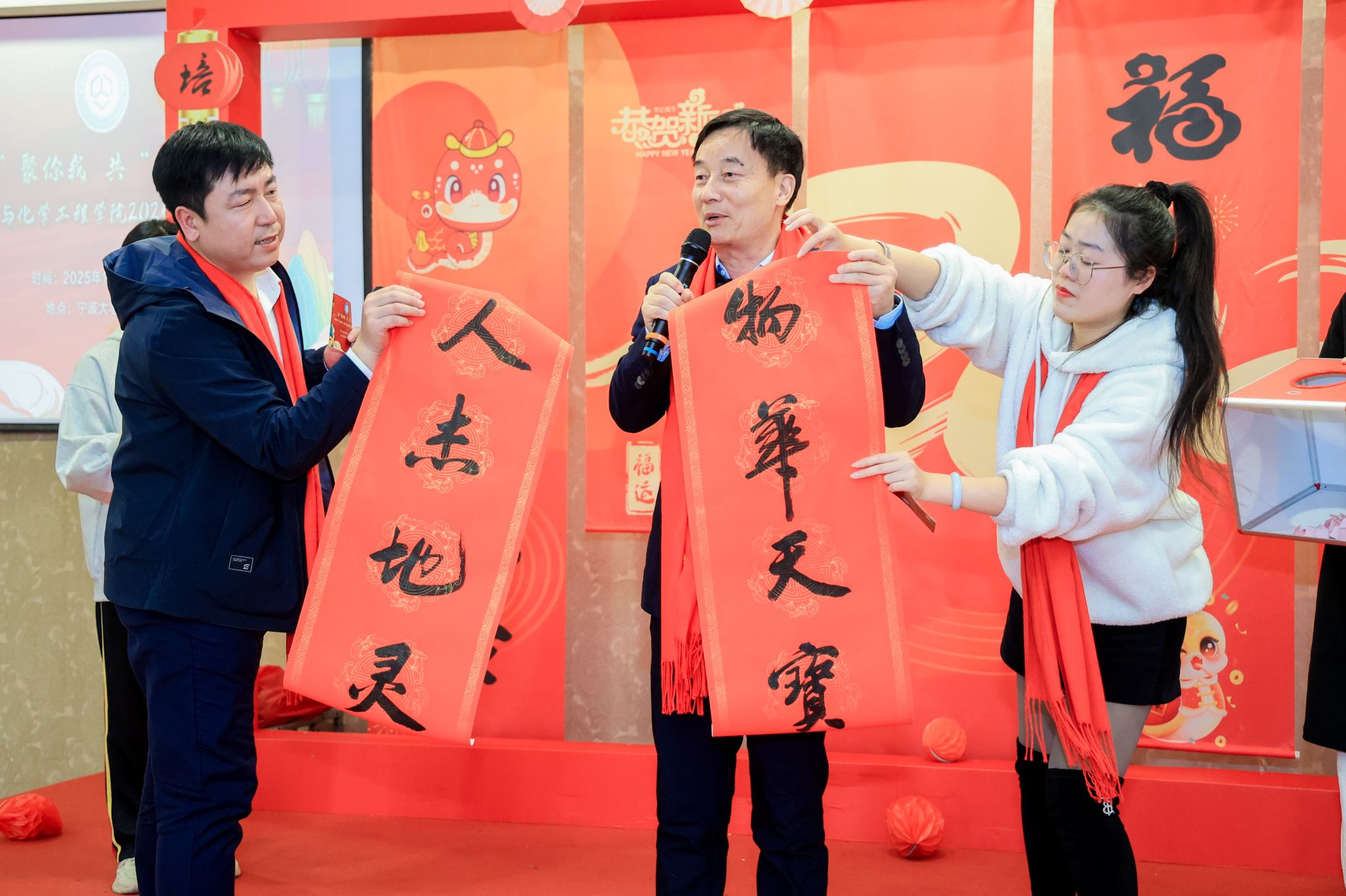 “‘材’聚你我,共‘化’新春”2025 年新春茶话会在宁大宾馆六合礼举行。学院领导、教职工及离退休教师代表齐聚一堂,共迎新春。